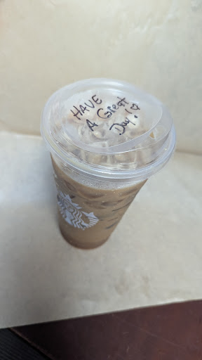 Read moreI have never once gotten a drink made to the beverage standard. They routinely have two or three partners on bar, but it still takes 10 to 15 minutes to get a drink. Today I ordered a salted caramel mocha, but it didnt have the salt or caramel drizzle. When I ordered a starbucks doubleshot on ice, they skipped it and took nearly 30 minutes to make it because no one knew how to make it. When they found someone who did, they added six shots of espresso when it would normally get 5, didn't shake the shots and added way too much milk.