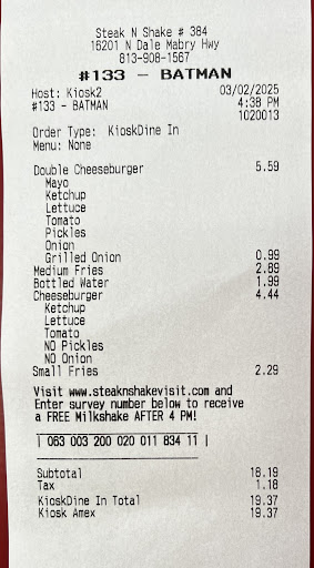 Our order was pretty simple for two people (big, but not huge); two meals, two shakes (so four drinks total), and a side of tenders with honey mustard. Now, again—I’ve worked fast food. Four or more drinks means give to the customer a drink carrier. No one wants to use their cup holders for shakes, come on (that's just a small nitpicky thing though, only stood out to me because of how negative of an experience in all this was). When I asked for a carrier, I got another wave of attitude, like I was being difficult just for asking. I paid (a little awkwardly on my part, I admit), but again, there was no effort made to create a positive or even neutral customer interaction. After handing over our drinks, I was told “Have a good night” in the most robotic tone possible. Confused, I asked about the rest of our order, as we hadn’t yet received any food. Only after I asked about the rest of the order did she realize nothing had been bagged. That’s when her attitude finally shifted a bit to something more polite. I don’t mind an honest mistake (I’ve definitely made them, too), but it was clear she wasn’t paying attention and didn’t really know or care about what we ordered. Which is shocking considering she was acting like it was a tremendous amount of work to even put in the order.