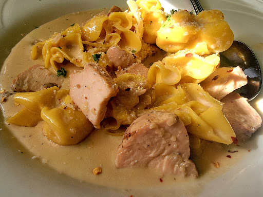 We usually like to support local restaurants around where we live. Today we decided to explore this one. We did not order much. We started with Calamari. It was tasty and crispy, just the way we like it. The menu is limited and most are with homemade creamy sauces. There is no steak on the menu so I ordered MICHELANGELO (Penne pasta served with peppers, sausage, chicken, and bacon with their homemade mezzo sauce). I only ate 3 bites. We also order Caesar Salad. She finished her salad but did not give thumb up or down. Because they claim food is made from scratch, so the price would not be so terrible if they put more meat in it . If the pasta and sausages were made from scratch, I could not taste anything special or authenticity of Italian cooking. The restaurant does not serve mixed drinks which is no big deal to us as they have beers and wines. The kicker on this was when we have the bill and we thought they added it wrong so we asked and our waitress said it was for this and point to a printed note which inserted to the bill folder for credit card fees to make us look like fools. It was not her fault but it would be nicer to tell us that there would be 3.5% added for credit card prior. She gets her $ about 20% tip for her work. It will be difficult for us to go back to my unfamiliar...