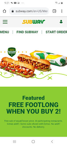 I saw this special online and decided to go to this location, which is unfortunately my nearest Subway. When l told the employee about he claimed to have never heard about the special, so l logged on to the Subway website on my phone and showed him the offer. He was still incredulous and didn't want to honor it. One of the other employees even tried to ridicule me by sarcastically saying "nice try" and chuckling. To top it off, the bread was stale. I wouldn't recommend this...
