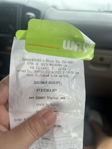 Read moreWas ask to be noticeable today going into this location and look to see how we where presented and how polite the ladies greeted you made you feel welcome ect. Today of all days was terrible. The lady making the sandwiches didn’t say anything of course yes she was putting new veggies in top of the old but feeling up containers but never said I’ll be with you in a moment nothing looked the other way while doing it. The lady putting the veggies was not smiling was trying to push us through to the end but then made us wait until she helped 3 other separate orders. And when I ask the lady to smile she said nothing than looked at me smerking and said I did but of course you where playing on your phone. No I looked down to see if this app loaded yet. And she didn’t ask us if we wanted anything else once she did get to us and rang us up didn’t say thank you nothing. It was very rude not only that. I all for other veggies and she ignored me when I just simply said smile it’s not that bad Is it. I never once seen her smile at 1 customer period.. this location was the mulberry plaza in the villages....