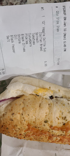 Read moreUsed to be good, but went in today, they no longer serve veggie pattys and the veggies were clearly old...the employee confirmed they were from the prior day (though they looked a week old as they were all wilted and some brown) and he indicated the peppers weren't very fresh (but didn't bother removing them). I then went to get the tea I had paid for and they weren't serving any! When I mentioned my dissatisfaction, the employee just looked at the clock and shrugged. Terrible customer service and they clearly don't follow the typical subway...
