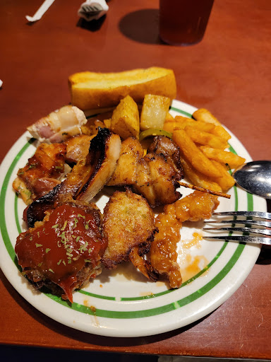 The staff, unbothered and steady, glide like shadows between tables, clearing plates before the regret sets in, refilling waters like a ritual. No one hurries you. The buffet has its own gravity. You stay as long as you need to remember what it’s like to be small before so many options, before the bigness of flavor and the smallness of restraint.