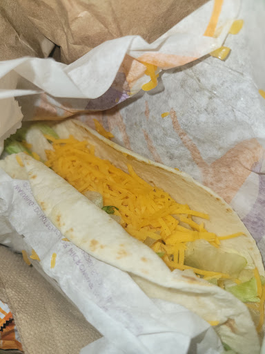 Read moreThe cashier Tonya had an attitude, and was very rude. She didn't say word to me through the whole check process, handed my food to me incomplete slammed the window shut on me, then handed my remaining item to me, slammed the window again and locked it. My food was all messed up besides the bean burrito. I bought extra meat for my crunch wrap which was absolutely disgusting. The lettuce was old and slimey, the beef had a funny taste, and the chicken was dry as hell. The meat on the items I ordered was skimped, and piled up with rotten vegetable toppings . I work for the food industry, and this is absolutely unacceptable. I'm the main cook on property, and I would never serve anyone a meal like I received. Food service is not a joke. It's a job that needs to be taken seriously. Unfortunately it's not in this establishment. I can bet that the only employee that's food safe certified is the manager. I will be contacting the Department of Health, and Better Business Bureau if this situation doesn't get this resolved in a...