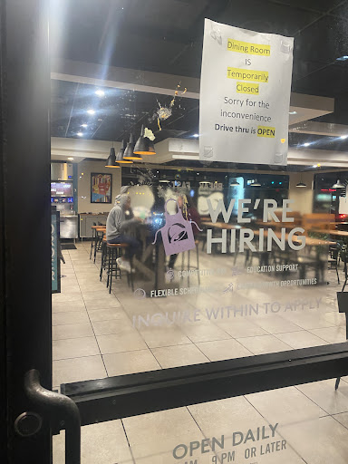 Read moreI'm being generous with this review, only because Taco Bell hits the spot for dinner whenever I'm working my second shifts at work. I'm gonna be honest as well, Does this Taco Bell have a nacho cheese shortage? I want to know, because anytime I order anything that includes the tasteless nacho chips with cheese sauce or the Nacho Fries, you get maybe a half an ounce of cheese sauce, 3 chips and it's over and done with. I want to blame the drivers but I can't, since they pick up the food, Let's blame the manager who sets the standard for Togo orders, and it seems to be at this location only that doesn't seem to care about repeat customers or customer care. I had an order picked up via Uber eats, never got a straw, the drink seemed to have been made first, which led to the ice melting. The food wasn't hot or kept hot, leading the Nacho bell grande becoming inedible. Thank Buddha they put the Luxe meal in a box this time. This isn't even a very busy location and I hate to shun the employees and managers, but you guys have to put in a better effort for guests. Stop forgetting items like the hot sauce in the Togo...