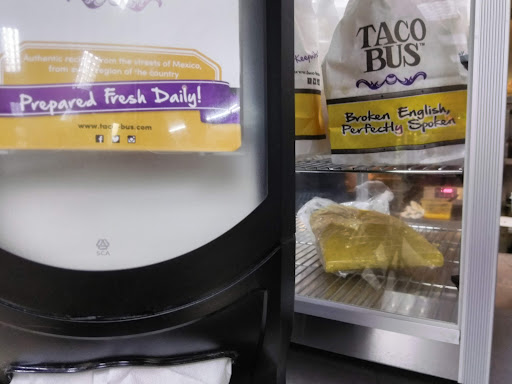 Read moreWent to the Lutz Taco Bus for lunch today. Yes, it's inside a gas station. But I keep hearing good things, so we went. My wife and I ordered their BIG tacos, which really are just loosely rolled burritos, they are in fact really big and loaded with good stuff. We tried the spicy chicken the shrimp the shredded chicken the fish and the chipotle chicken. That's five of them, but I ordered it and start out that way, we ordered four and had problems with one of them. my wife and I love fish tacos we get them everywhere we go, so I was excited to try these. When I started to eat it I ate probably a third of the way down before I ever found the fish. And when I did I was not happy. It smelled and tasted like an old stale fish stick. The very nice woman behind the counter apologized many times and offered to swap it out for a different one and that's when I got the Chipotle chicken. The chicken tacos and the shrimp were excellent. It is a little unusual to order tacos at a gas station, but I think the food is pretty good, and we will probably go there again, I'll just avoid the...