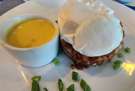 Read moreLike the other Marriott restaurants on site, the waitress and service were top notch!! We were greated right away by what appeared to be a manager. We were given the option of indoor/outdoor. The waitress was very helpful, kind and knowledgeable about the menu items. The food was decent, but not for the price point...I get that it's a resort and we're on vacation, but I think charging $9 per egg is excessive and taking advantage of the fact that there are no other breakfast options nearby. My poached eggs over hash plate was delicious because I didn't use the hollandaise sauce that had no flavor...salt and pepper did the trick. The name of the meal has the word "scallions " in it....they were merely sprinkled on the blank parts of the plate and weren't enough to add any flavor. The coffee was bold and strong, which I really like. The buffet is around $23pp unless you want to add an egg, then it goes up to around $28pp. Like other reviews, I agree that the views...