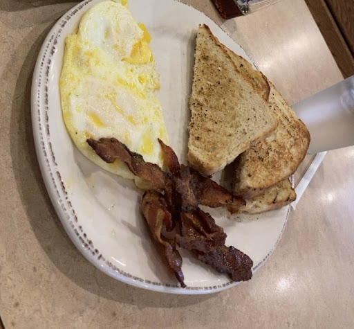 I got my food…both my egg yolks were cooked all the way through after I ordered them over medium. I asked for crispy bacon and received very chewy, cold, and super greasy bacon. It tasted as if they had pre made a bunch of bacon for their shift and they just threw the old bacon on the grill. Instead of cooking me a fresh order. (I’ve worked at restaurants that pre cook their bacon at the beginning of the shift). It was just terrible.