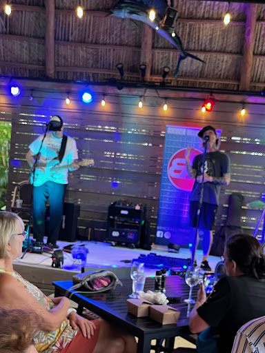 Read moreWe joined our daughter in law and our two young grandsons here for an early dinner. We opted to sit 'outside' under the thatched roof. As luck would have it, the guys playing live that night were setting up and doing sound checks, which thankfully fascinated our 4 and 7 year olds. Our server was great and worked with us on the flat bread marinara pizza the boys ate for dinner. My adult companions had the coconut shrimp appetizer, and a shrimp flat bread. I opted for the Jamaican Jerk wrap with a side of rice and beans. They serve wine and beer so I opted for a glass of Prosecco. The atmosphere is upscale beach chic. Relaxing and enjoyable. The food is presented very nicely. The boys enjoyed their flatbread pizza, our daughter in law enjoyed her shrimp flatbread. I thought they did a great job on my Jamaican Jerk wrap. By far, a lot of food. The coconut shrimp was the only disappointment. As my partner said, the shrimp were good but he couldn't taste any coconut. It was also a small serving for the price. Would I go back? Hell yeah. Staff was great. Live music was great. Great fun place. Now while I said we took 2 young kids with us, and they do have a kids menu, I would suggest bringing older kids. We went early so the outside seating area had only one other table full when we arrived..but the place was rocking...