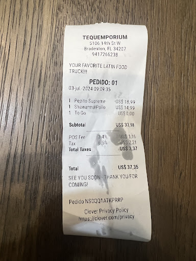 Suffice it to say that Iâve lived here for more than 30 years and my family and I have tried different restaurants and venues around the Sarasota-Bradenton area ever since we made this area our home, but Iâve never experienced a worst treatment as a customer than in this place! After arriving and sitting down next to a couple of ladies (more about one of those ladies next..) not knowing where to place the order, I have decided to stand up and order what we came to eat âShawarmaâ and we were greeted by a person inside the food truck that simply said âWe donât take credit card payment here, it is Cash or Zelleâ to which I agreed! When trying to make the cash payment I noticed that the Menu only showed ONE (1) price for the Shawarma of $14.99 and various combinations (not well specified) So I asked if one of the combinations could be with chicken & falafel and the person said âokâ but when proceeding to charges me stated that the price would be $42 (for the shawarma and âpepitoâ of $18.99)âŠInmediately the math wasnât adding up! When I asked âwhy that muchâ is when the person proceeded to explain that the âfalafelâ was separate and had an up charge! (Something the person should have said when I asked for that combination instead of waiting until I asked why the short change back)âŠNot enough with that, when I had ask to just have the one main ingredient instead of the combination (again, up charge Not stated in their menu!). The person still shorted me with the change and said âwhen you come back for the food Iâll give you the restâ (a few more dollars that they didnât seem to have in a venue that mainly accepts cash as a payment option!?)âŠThe worst came after I sat down on the table to discuss all of this with my wife and one of the ladies sitting right next to us and that seemed to be one of the owners, started eavesdropping and proceeded to bully us, raising his voice in anger about âtaxes being chargedâ and with her hands up in the air wouldnât even respond to when I had asked her âwho she was and why was she getting in the middle of our conversationâ she kept flailing and raising her voice! At this point I thought she couldnât have been the owner since what kind of business owner would act this way to customers without ever asking âwhat seemed to be the problem?â At least! Instead when I said that the person inside the food truck had made me come back a few times for my right change she responded with her hands flying up in the air that she didnât care and that wasnât important! My wife begged me to leave by how horrendous that scene was! I picked up the food and decided to ask for my receipt and there it was besides the local taxes charged a POS charged when I had payed cash and no POS was used! At least none in front of me!âŠ.Business owners should never treat customers this way! Maybe is a cultural thing or not but not in the US! Worst experience of my life at a...