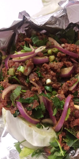 All the curries are very very good. My favorite is the chicken Larb but the Yum Nam Tok was also excellent. If you want something that tastes like comfort food and it very healthy and full of veggies that warms the soul, get the rice soup!