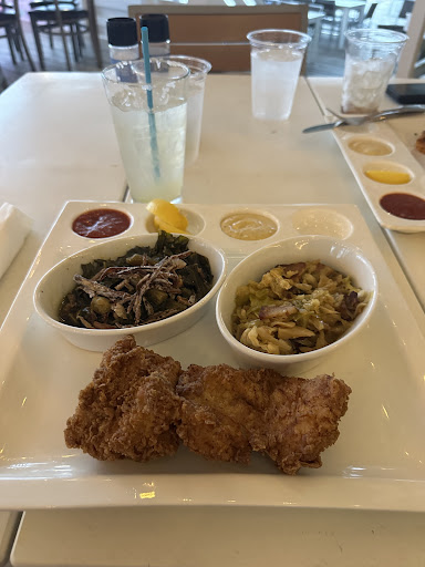 I ordered the fresh fish of the day, grouper, and chose to have it grilled. For my sides I had garlic/shallot brown rice, and bacon braised cabbage. You can definitely taste the fresh fish, caught earlier that day, and thickness was a good size. Portion overall could've been slightly bigger, that or the price could've been 2 or 3 dollars cheaper and it would've been perfect. The rice was pretty good. I normally don't like brown rice but love garlic and shallots so decided to try it. The candied pecans on top give it a nice kick of texture. The bacon braised cabbage was nicely seasoned and sauced. It wasn't too overwhelming, and it was a good portion size.