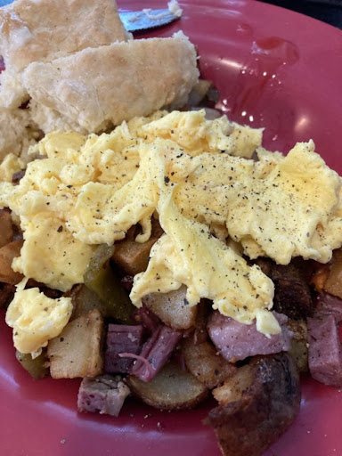 Read moreWow 👌🏼 just wow. Great little place to have an amazing breakfast 😋. Lets start by the ambiance of this lil gem 💎 its is super clean and relaxed atmosphere with the homemade grandmas in the kitchen vibe. The coffee is served black with a lil side of creamer and you add what ever sweetener you want. Now let get to the delicious breakfast They are known for the BISCUITS AND CORNBEEF HASH. I had the BISCUIT and gravy with 2 sunny side eggs and let me tell you that the biscuits are by far the best of the best that i have had and trust me i love my breakfast and always looking for awesome lil spots and the BISCUITS are top tier. I also ordered the CORNBEEF HASH came with another biscuit and 2 eggs. Well let me tell you if your expecting your usual cornbeef hash this is not it. They have created their own style cornbeef hash the is nice size chunks of Real Cornbeef and potatoes with onions and peppers all you have to do is crack the yokes on the eggs and let it drip in and mix and you will have an explanation on your taste buds. My wige ordered their breakfast burrito and lets just say it was amazing and the size of that thing my wife only was able to eat half of it. That was also a taste that made your taste buds dance. 😋