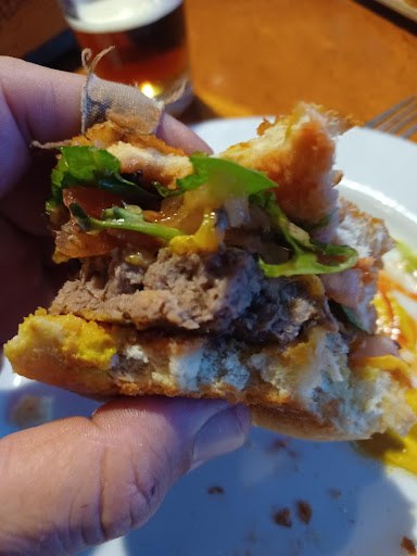 Microwave kitchen. Came in here because we saw a few beers on tap that we really like (Moreland's Old Speckled Hen, in particular). It was mostly empty and we sat at the bar. Ordered two $9 hens each and they were great even though the bartender didn't know how to pour them (it's a nitro beer, like Guinness), and they were served in straight-wall small pint glasses instead of real pints. She was scooping the head off repeatedly with a spoon and said "sorry, it's pouring all foamy like a guinness". We assured her it was as intended and best to just let it settle and then top it off before serving; eventually she got it. No problem. We also ordered some food. I asked if "chips" on the menu meant "french fries" since the place seemed to have a brit theme all over and on the menu. Nope, they were american potato chips. Again no problem. The $15 burger came and it was pretty lame; a microwaved or steamed frozen patty of questionable quality. It was a very uniform and unappealing brown color and had the look of a sponge-meat mcnugget with matching texture. Look at the picture; that's their $15 burger. It's not fresh, ground, regular meat cuts, grilled or griddled to perfection, it's pink slime made of beef hearts and bholes cooked in the mic. The bun seemed like it was toasted, so maybe they also have a mini toaster oven in the kitchen too. My wife's panini supposedly had chicken that was "smoked in house" (where was it smoked, in the microwave or the steamer?). It also had whole garlic cloves (like half a bulb worth) that were semi-raw and with no caramelization, as if they too were microwaved or steamed. Overall the food was very crappy. On a par with cafeteria food available for 1/3 the cost. Then i got the bill and the burger was "double cheeseburger, $18". The tender assured me that it was the same price and just the way it rang up. I think she was new. After I paid and tipped, I asked to see the menu again. Sure enough it was not the same, but the $15 i thought it was. She refunded my $3 cash, but not the 20% tip and tax that I paid on the extra 3 bucks. This kitchen is a joke. I don't know if the kitchen closed early (we got there around 7pm) and the cook turned the griddle, broiler, fryers off and cleaned them already of if they just don't even have any of that. The microwave was still plugged in at least. Go for a a beer maybe, but definitely avoid eating any of their food unless you're into those pre-wrapped burgers that you get at gas stations and plop in the microwave for a few...