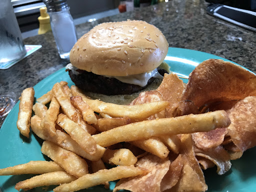 I ordered a plain hamburger as I’m not a big fan of gator (which they have plenty of) and not big on seafood. The waitress asked all the right questions but unfortunately, I was served a hamburger that would make a hockey puck proud. The burned patty tasted like it was frozen prior to cooking as did the French fries. I’ll confess that the kettle chips were very good, however.