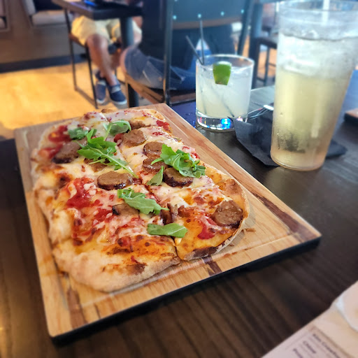Read moreFirst time and it did not disappoint. Sports bar don’t expect a quiet atmosphere because it’s not going to happen. Boasts a good size bar, and good mix of draft beer. My husband had the old fashioned and enjoyed it. If he had any room left he would have went for a second. Wall to wall televisions, and pretty comfortable seating. Nice patio, a bit to hot for me this time of year but will definitely do in cooler weather. From what I read they are going to enclose and have televisions out there as well. We had the nachos and added ground beef. The chips were perfect and did not get flimsy. I enjoyed the blend of different cheeses and the portion is huge. Nachos are definitely shareable, and way more than enough for my husband and I. Hubby did the Chicken BbQ flatbread and really enjoyed it but took half home because we stuffed ourselves on the nachos. I snagged a bite of the flat bread, and would give two thumbs up. I ordered the Nashville Hot Chicken sandwich and this baby was incredible. It is a deep fried crispy chicken breast, but not dry. Portion is huge and the chicken breast hangs out of the bun. If I did not find so many other things I want to try I would go just for that sandwich. We enjoyed the fries with the signature sauce. I can’t get over the quality of ingredients and how fresh every ingredient tasted. Nothing, I mean nothing we had tasted like it was from a can or jar. I felt the prices were reasonable for the quality of the food, and a good value for the portion size. The service was friendly and attentive. As far as we our concerned this place is a real gem, and we will definitely...
