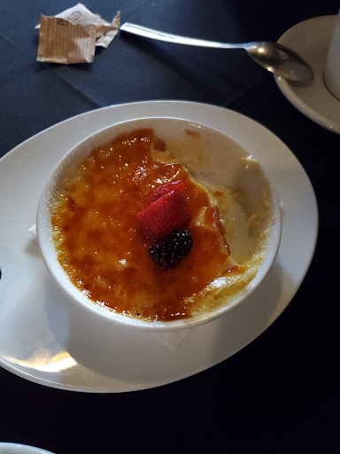 Read moreSo this is our second visit to this place. We came for lunch 3 weeks ago and it was awesome. We came tonight for dinner and it was BETTER then the first time. My dinner guest is a wine aficionado so she was thrilled with the caliber of wines available. My guest also absolutely fell in LOVE with the Stuffed Fried Green Olives. They are expertly breaded and stuffed with sausage and come with 3 dipping sauces. She said they are the best ever. Not my thing so Iâll have to take her word for it. I ordered the Cowboy Bone In Ribeye and requested between rare & medium rare temp and too my surprise it came EXACTLY as I requested. RARELY can I get a steak cooked to the temp I like. Kudos to the Chef. They know theyâre stuff. ALL sides are prepared fresh to order and they are GREAT. Whipped Yukon potatoes were very very good. Burgandy mushrooms were perfectly sautĂ©ed and very good. Steak Entrees come with 2 sides. My guest ordered the Bone In Pork Chop and said it was cooked perfectly and very flavorful and good. It comes with whipped Yukonâs , a Veal Demi Glaze and crispy Shallots. My guest said the crispy shallots were excellent!!! She ordered sautĂ©ed spinach as a side and it was good but VERY garlic forward. When it came to dessert Iâm a little picky as I do NOT care for chocolate and cheese isnât my favorite so I asked Liz a Chef / Manager I think she is , if she had anything with fruit maybe strawberries and she said with enthusiasm that she would make me a â Berries & Cream â dessert. Sounded great to me. Well they totally outdid themselves as Liz prepared a FRESH Creme Anglaise that was TO DIE FOR!!! I trained under the World Pastry Champion Ewald Notter so I know my â stuffâ and that Berries and Cream with fresh Creme Anglaise was phenomenal. And NOT even on the menu. Take my word for it it should be on the menu. The atmosphere is good. Live music that was nice and not assuming or interfering as we carried on a conversation normally. If you get a chance check this place out. You will NOT be disappointed. We will DEFINITELY be back again soon !!!Thomas was our server and was very nice , knowledgeable of the entire menu and took very good care of us. We will definitely request Thomas if he is working the...