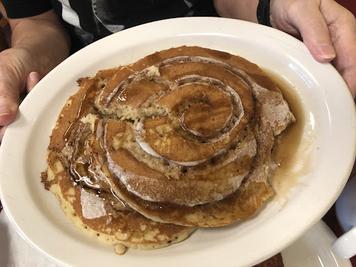 Here comes Christy with our fresh from the flat top flavorites! When I SAW her SET those Cinnamon Roll Pancakes down, I literally had to pick my chin up off the table. I looked up at my friend and all I saw was this look of wanton desire come across her face. Followed by a whole lotta 'yummming' going on as she dug in!