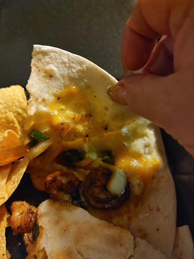 Read moreFor anyone who is curious about the new fajita shrimp quesadilla, it is not worth it in my opinion. This is what it looked like when I opened it. Yes there's a bite taken out of one of the pieces but I opened it after it didn't taste like much except for flour tortilla. The other picture is exactly what it looked like when I opened it, nothing removed. If there was any garlic lime sauce on it, I couldn't taste it or see it. Unfortunately the garlic lime is what sold me on trying it. It also seems to only have about a tablespoons worth of cheese on it. I should have known not to get it when I asked for it megajuana and they told me they didn't have enough shrimp to do that. They also assured me that there would be more than enough for a normal serving. Okay I guess about eight shrimp total is what you get on a normal serving which I think is a bit stingy but fine, it's shrimp. Could I at least have some cheese on a quesadilla? Even Taco Bell has more cheese than that on their cheapest quesadilla! Every quesadilla I've had from various restaurants usually oozes with cheese .. in fact my granddaughters kids meal chicken quesadilla had plenty of cheese on it. But to think that they charge $10.49 or something like that for this meal... outrageous! Maybe I was just unlucky enough to get a very poorly prepared one. But I doubt I would ever try it again. Or anything else from that place...