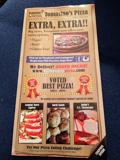 Read moreFirst let me say I love Tomasino’s Pizza. My very first time was in July of maybe 2011 in Orlando. Christmas Music was playing outside and I heard it across the parking lot by Ross. I got the special, took it home and knew this was the best I would have short of me being back home in the Bronx. I went there numerous times, brought friends from both here in Florida as well as up North. Never a bad experience. I relocated to the Casselberry area and was thrilled they were so close by. I ordered via telephone about 6 wks ago. Picked up my pizza...it was as usual delicious. On yesterday, myself and a friend went for late lunch... There were open seats but not wiped down, that I could see, regular menus that everyone would use, rather than being able to scan a barcode on my phone. . There was 1 server and it began to get quite busy. She took our order, appetizer and 2 Lunch Specials. The food came all together, so eating the appetizer allowed our pizza to get cold. We asked for garlic and parmesan cheese, it was brought to us from wherever and seemed to us that they were used and reused by others. When we asked for more water, the glass was reused, rather than being given another one. As I said it was getting crowded and this location has limited seating space. Customers were now standing in the doorway, some with, some without masks, as customers were coming to pick up their takeout orders, they had to walk thru the group of waiting to be seated people. I am not one who complains, however, we are still experiencing COVID and the precautions that should have been taken were not there. Both myself and my friend were just disappointed overall. Some CDC training may prove helpful. I will not be returning to...