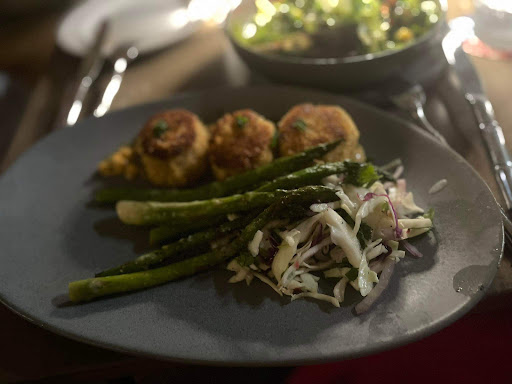 On a recent dining experience here, we each had a large salad. One was filet mignon with potatoes and a great deal of lettuce. The second was shrimp with a great deal of Romaine lettuce.