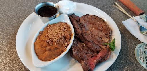The Ribeye showed up in about 8 minutes with one end raw | other end well done | middle acceptable. I ate the middle portion best I could as like the Local Guide had pointed out the meat had TOO MUCH GRISTLE
