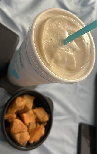 The last few times at this location my mocha madness smoothie has been way too bitter and watery, they're definitely not making it right. The worst part though... To begin, I went through the drive through window to pick up my order that I'd ordered online since they never actually bring the order outside if selecting curb side. The woman handed me the smoothie but it was over flowing and liquid was all over the top of the lid ready to spill over. I drive a low to the ground car and could not see the liquid sitting on top. She gave no warning and when she handed it to me, it spilled all over my seat, center console, and clothes! I told her that I would've appreciated a warning and not to have been given a smoothie that was over flowing like that causing it to spill all over in the first place. She just stared and didn't acknowledge the problem at all or apologize. Terrible customer "service". I've never had such a horrible experience like that. I asked for more napkins, which she did get. Don't know if she just doesn't want to work there, it's a lack of training, poor management or what, but be warned. Now I have a sticky mess to clean out of my car, which I've always kept clean. And another bad smoothie.