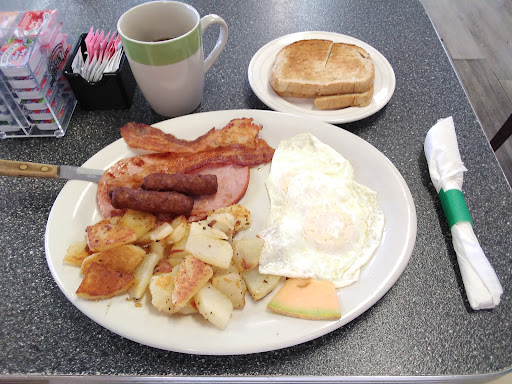 Read moreI was totally impressed with this breakfast and the very low cost. I noticed all the veteran photos on the walls and was told that they give a discount to veterans. The staff was very friendly and the place had a nice crowd. I was watching plates being served to the customers and everything looked appealing to the eye. I ordered the three meat breakfast with home fries, over easy eggs, rye toast and . coffee. As usual, I always take the top off the pepper because the holes on top of the pepper shakers are never big enough to dispense the pepper. I was pleasantly surprised on the medium course of the fresh looking pepper and coated my over easy eggs. My breakfast arrived and was very impressed with the way it looked. It was awesome in taste and they did not have to wash the plate after I was done. I think I will just go there for breakfast from now on and leave the cooking to these fine folks. I am a fairly decent cook myself but how can you not eat here with the low prices. I can't wait to try thr catfish sandwich that is on the menu. I haven't had one of them in ages and look forward to trying that soon. They are open from 7:00 a.m. to 1:30 p.m. so need to stop by for breakfast or lunch if you're planning to stop by this wonderful place. You will not be disappointed. I want to thank the cook I talked to the other day for letting me know about this place. I live right across the street and glad...