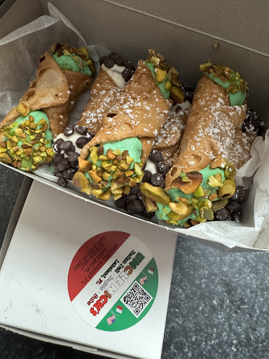 Came here to Uncle Nick’s. And we were pleasantly surprised when it is a bit of a drive, but it’s worth it. We originally found this place from TikTok. My husband got the hot off-the-griddle bagel with ham and cheese and egg for breakfast; he put it on a blueberry bagel. The sandwich had a combination of sweet and savory. It also came with a cute triangular hash brown. That is perfection. The portion size is accurate. The bread on the bagel was nice and crisp. I got the Bro Joe Italian chicken cutlet on ciabatta bread. The ciabatta bread was airy, crispy, everything you need. The chicken cutlet was tender and juicy. It’s not just one cutlet; it is stacked cutlets. My portion size for the sandwich was huge. I have enough to last the entire weekend on the sandwich alone, and I’m not mad about it. I also got a cannoli. This cannoli brought me back to my childhood of making cannolis with my aunt Adriana, who was from Italy. It was an out-of-body experience. The second I bit into this thing, I knew I already went back and ordered more. They have two sizes of their cannoli: miniature and large. The shells are made in-house, and so is all the cannoli filling, and they filled them right in front of you as you order. They have two types of cannoli here: pistachio and the traditional chocolate chip; both are phenomenal. My husband got the tiramisu; it is stated it was good. He also did order a lemon poppyseed muffin, which was delightful. My husband got a latte; it is the Kimbo brand of coffee, so it is an Italian import, and it does taste delicious according to my husband; he says it has a deep, rich taste to it. You can taste the deep, dark roasting notes of the coffee as you’re drinking.