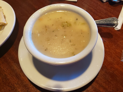 Now for the "bad". The 60-ish heavy-set hostess never greeted me, did not ask me to follow her to the table, and did not tell me that my server would be with me shortly. I am assuming that she was angry about something and took it out on me. She spoke not one word to me. Personally, I have a problem with this. Bad day or not, if you are working with the public, put your happy face on or get a job working in a cubicle. Horrible first impression. After more than 5 minutes, a chunky blonde female server came to take my order. I asked about the bisque. She said it was fabulous, so I ordered a bowl. She did not lie. It was wonderful. When I ordered the bisque, I kept the menu and told her I would order the rest of my lunch when the soup was served. Well, guess what? Blondie did not serve my soup. It was served by a food runner. Blondie never did show up to take an additional food order. I actually had to flag her down to get my bill.