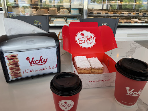 Read moreI’m from out of town but my last stop before heading home is to find a Vicky bakery since I was staying on bird road my friend told me about this new location. I was very excited but very disappointed! My husband ordered a rum cake to try while we waited and first it was mislaid and second his fork broke trying to eat the so called rum cake that wasn’t! We love the pasta de bocaditos and sure enough that was the only thing that they didn’t have available! As I sit here in the car driving back home I sure hope that after spending close to $90 I sure hope that the other things I purchased are good. We asked for 4 pastelitos of each and the girl stuffed them all into one small box! Let’s see what kind of a mess I will find! It’s a big shame that these new franchises are bringing this 5 star bakery into a money machine and don’t care about their products or customers! Never again it’s the original Vicky bakery or down to...