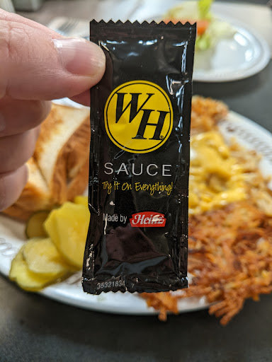 My order was a take out, and if I had known how it was I would not have tipped as all, let alone well. When I got to a scenic pull off to eat in the car and I noticed the gravy was on only the hash browns and the eggs were separate as if it was a regular egg breakfast and not a bowl meal. I discovered the ham, a whole slice, wrapped separately. There were no utensils in the bag, no napkins, and absolutely no salt or pepper included.