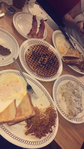 Our waitress was an older woman. She talked so low and crackly we had to lean in to understand what she was saying. When ordering my meal, she asked what waffle I wanted. My menu item didnât include a waffle, so I of course was confused. She got very annoyed and passively aggressively explained that another completely different item came with a waffle, and asked if I wanted it. I said no, because thatâs not part of the item I ordered. She continued to be inconvenienced by our presence for the rest of our time there. Constantly sighing when we were nothing but respectful. After we had gotten our food, a group of obviously drunk people walked in. We donât care. This is a Waffle House at 10:30pm. Thatâs the norm. They decide to sit right next to us. We are having a normal conversation. Weâre not being loud at all, just laughing and having a good time. Yet our waitress comes over to us and says âYou girls need to quiet down. This is a family establishment and these people are trying to have a nice meal.â I really doubt these drunk people who had just come from a party are allergic to joy and laughter. Plus, we arenât even being loud. And ITS A WAFFLE HOUSE! I love Waffle House but itâs not exactly a five star restaurant. And if these people wanted silence they wouldnât sit next to some of the only other people eating. I truly down they complained to her. Sheâs just miserable. Later, our waitress walks by us, and my friend politely stops her and asks if we can get some food to-go. She gets very irritated and says âI canât do that right now. There are other people here besides you.â I might BEGIN to understand this if it werenât for the fact it was not busy at all. There were maybe three other tables there, and there was another waitress working so she was by no means too occupied for this. She says she will come back to our table, but in the next 15 minutes she doesnât. My friends dad comes in and asks for the check and again for the to-go order. She finally takes it and claims she was going to, like we were just being impatient. It was like she was trying to get this teenage girl in trouble with her father. Very weird. I would like to add that the other waitress was very kind. I wish we had her. I saw another post on here with the same experience as us posted 2 hours after we had left! It seems like she just...