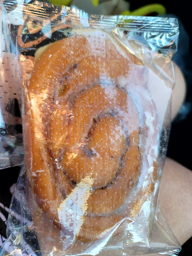 Jumbo cinnanon roll - it looks scary in the wrapper, but it's great and not hard. It's just a little messy to eat.
