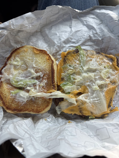 At the table and pulling it out of the bag, my burger was there, the fries were there (extremely anemic and underdone), the nuggets were there. And an extra order of fries and extra nuggets with two bonus sauce packets. BUT NOT THE POTATO! I had to go back to the counter for that and this was prepared properly though light on the cheese.