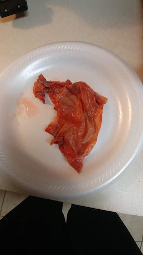To top things off, despite ordering a full size taco salad they gave us a small chilly instead of the medium you're supposed to get. And all of the food was cold. I mean cold, the meat on the single with cheese was cold to the touch. So we drove home to re-heat our "fast-food" in the oven. And when I took the burger out of the sandwich to re-heat it, I noticed the cheese slice it had looked like someone took a bite out of it. There were two large chunks of the cheese slice missing - one big enough and round enough to be a bite. (and I couldn't find the rest of the cheese on the bun, lettuce or wrapper - it was just missing)