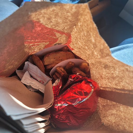 My name was called for our food and I went to pick it up. Thanked Rayquan and he thanked me as well. I got to the table and my wife asked if we could get buffalo sauce. So I went back up. Rayquan had apparently heard her asking and got us a cup before I could ask. He also gave us some packs of ketchup, meaning he likely saw my struggle at the ketchup station and had to save his second senior of the day. I didn't count them, but it was around 6 for two orders of fries. One large and one medium. I would say that is just right. It wasn't like when you go to Taco Bell and they ask if you want sauce, you say no, then have to hire an excavator to remove all the packs from your bag to reach your now wilted, soggy taco. He teated me and my family with respect while taking the order and once we were seated.