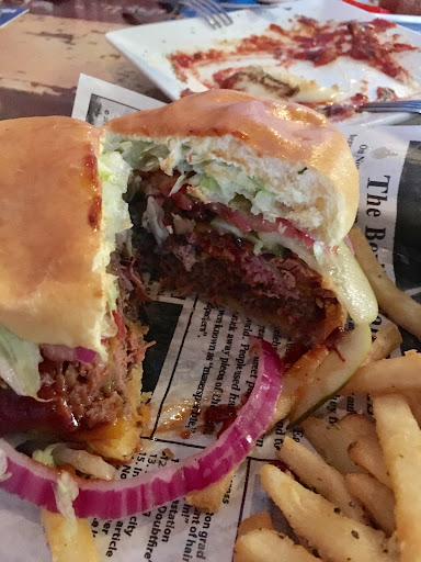 Read moreIf you enjoyed the old Captain's Cabin, you'll like Whiskey Park. Used to go to Captain's Cabin after work when I worked further down Airport Road. The new Whiskey Park is an upgrade. Friendly, efficient staff early on a Friday night (before the band set up). In fact, our food was out to our table so fast that we couldn't believe it. Table had the fried green tomatoes, the brisket platter, and the Saint burger with the cajun parm fries (for an extra $1.50) and a brownie dessert. A place like this really needs a shrimp and grits on the menu. These are the thickest fried green tomatoes I've ever seen in my life. They're delicious, but would like to see them just a little thinner than what they are. Nice remoulade to accompany, but sometimes, it tasted like we bit straight into a peppercorn. Brisket platter is odd in that it's served on wood plates on top of the platter. Had cole slaw and mashed potatoes as the side. Excellent cole slaw. Not sloggy like some other places. Burger on a brioche; the meat seems too small for the bun. Definitely a good choice on the cajun parm fries, but I think perhaps an extra dollar is more appropriate than the $1.50 upcharge for those fries. Tamara (I think) was server. So sweet, very knowledgeable about the menu. There's a jukebox there that was playing 80s hair band music until the band set up. Pool tables still there like the old Captain's Cabin. Good selection of drinks. Would be interested in seeing what they do here on...