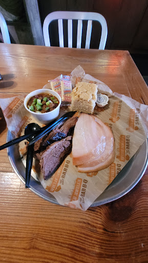 Read moreVisited this location for lunch today. It is a very unassuming exterior that opens up into a beautiful dining room putting you in the mood to eat great barbecue. You order before you sit and there's a large menu to your right which is very easy to read to order from as well as very helpful friendly faces inside. Prices are in line with most barbecue these days $15-$20. My order was the two meat special with brisket and turkey and the "side of the day" which was chili and I picked the cornbread over garlic bread for my toast. I believe my order came to $22 with a tip. I found a seat after filling up my sweet tea and waited for my name to be called, which did not take long. My first impression of the food was A+ presentation however, a little bit small on the portion size compared to other places. First couple bites were without barbecue sauce and I noticed there was none on the table. There is a small BBQ sauce bar at the back of the dining room. Glad I noticed this as I wasn't told this originally. The turkey was good. A solid B. Good flavor, juicy, just lacking the smoke I expected. The brisket however was an D+. Unfortunately it was overcooked and dry. And I also received a large portion of fat which couldn't be eaten. I do not bake but the cornbread was missing whatever holds it together. It was a little dry and crumbly and the bottom was overdone. It had good flavor so I will give it a C. The chili was more meat than beans but lacked seasoning. I will give the chili a B-, easily fixed with some flavor. Overall B restaurant as it's a great little corner spot with wonderful ambiance and delightful service. I would definitely return, as maybe I just caught them...