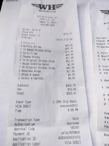 Read moreThis WingHouse was very good! (Unlike the one in New Port Richey.) Went there before going to a concert across the street. Was very busy but we were able to get a seat within 5 minutes. Staff was very friendly and courteous to everyone. Typical bar food - fried apps, burgers, wings, wraps, salads, etc. They do have many sauces for the wings which is great. We started with the spinach-artichoke dip which did not disappoint. I had the boneless wings with mango habanero sauce which were nice & tender & very tasty. My friend ordered the cheeseburger sliders but was delivered a regular cheeseburger. The server thought that if she smiled enough at us, it would be okay...lol...as she told us since it was so busy they wouldn't be able to fix the mistake. I could tell my friend was disappointed so I asked to speak to the manager & the server asked "Really?" with a shocked expression. Instead our waitress came back, looked at the order she wrote, fessed up she took the order wrong, and reluctedly and sheepishly asked my friend if he wanted it corrected, which he did. She said she would see what she could do & 10 minutes later his correct food came to the table. He was very happy and said the sliders were pretty good. Overall this location...