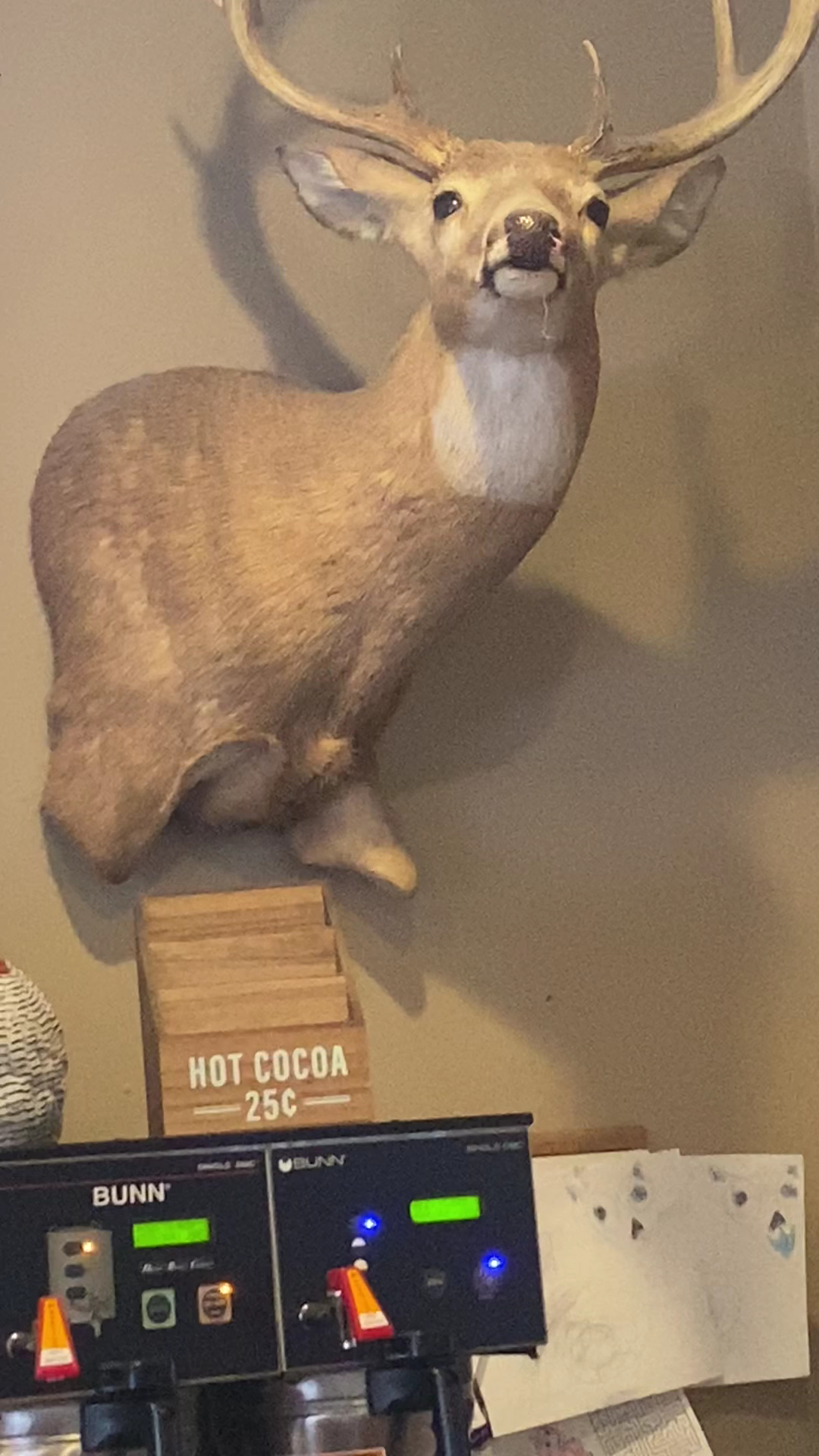 The decor was like our Alabama in-lawsâ kitchen: a sweet collection of ceramic roosters and chickens behind the register; plus head of deer and large screen tvs scattered here and there behind the bar and throughout the place.