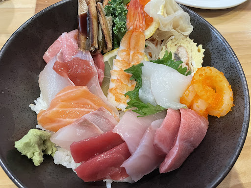CHEF and STAFF are FRIENDY AND PROFESSIONAL: I was sitting at the counter this time, and I enjoyed seeing how the chef prepared our food. He placed the Chirashi bowl on the counter but told us to “hold on” (not yet) with smile … I could almost feel he was designing chirashi artwork on this bowl, and you see, this chirashi was beautifully done!! Just so detail, delicate and perfection, so first, you enjoy this art visually, and then taste this amazing mouth melting fish! Mmmm I appreciate ocean! lol (I mean it)