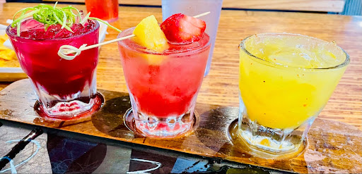 My order of Margarita Flight (3 flight sized margarita) came out expediently. I ordered Prickly Pear (tequila based pear agave drink) was the sweetest of the three The lime juice added a slight tart contrast, nice. The second was Strawberry Pineapple (tequila based strawberry and pineapple triple sec) was boozy smooth lightly sweet beverage that went down fast, really nice. My third in the flight was Mango Fuego (mango tequila with habanero agave) a spice bite tropical libation, very beachy. This was a great flight combination.