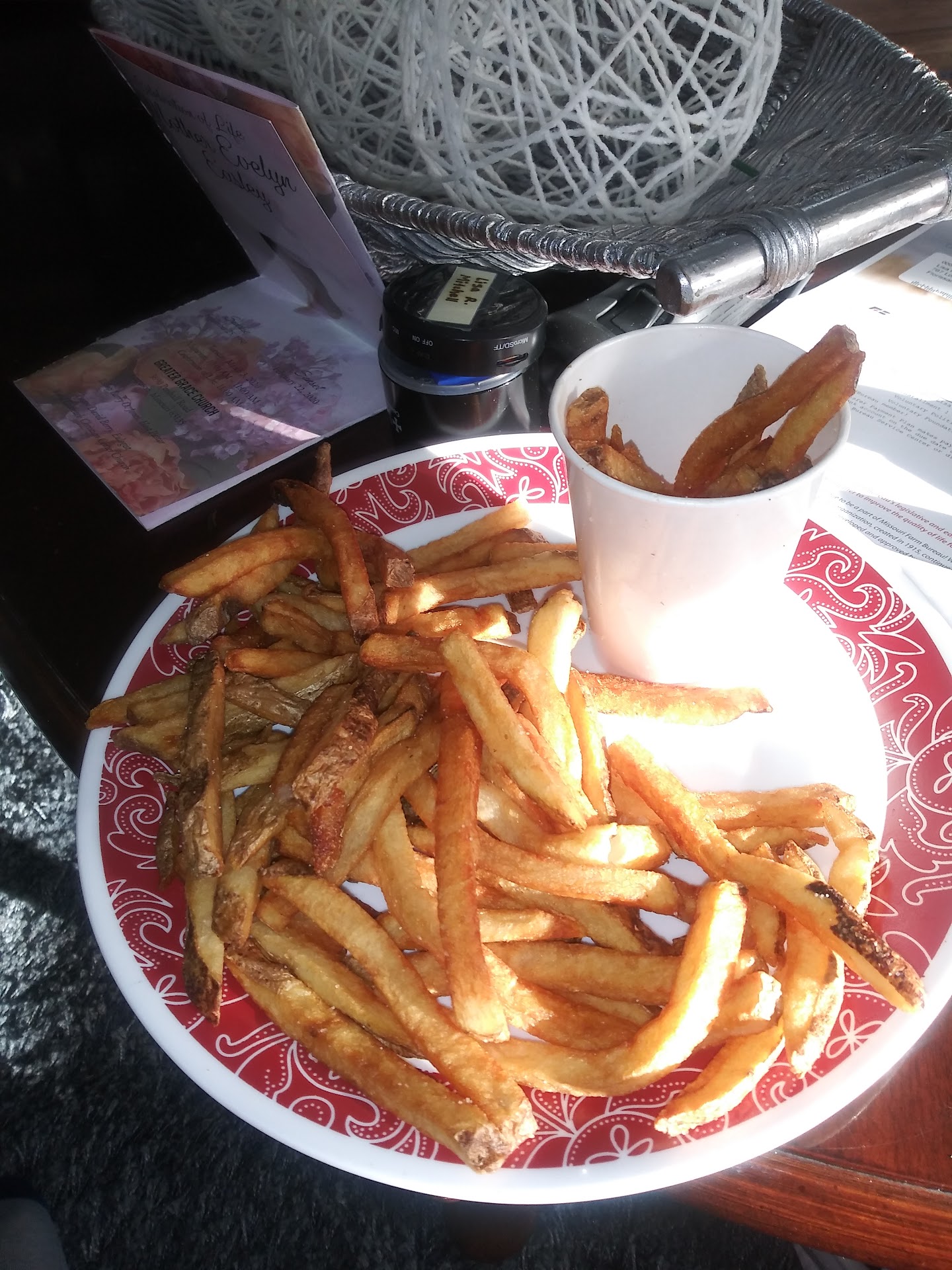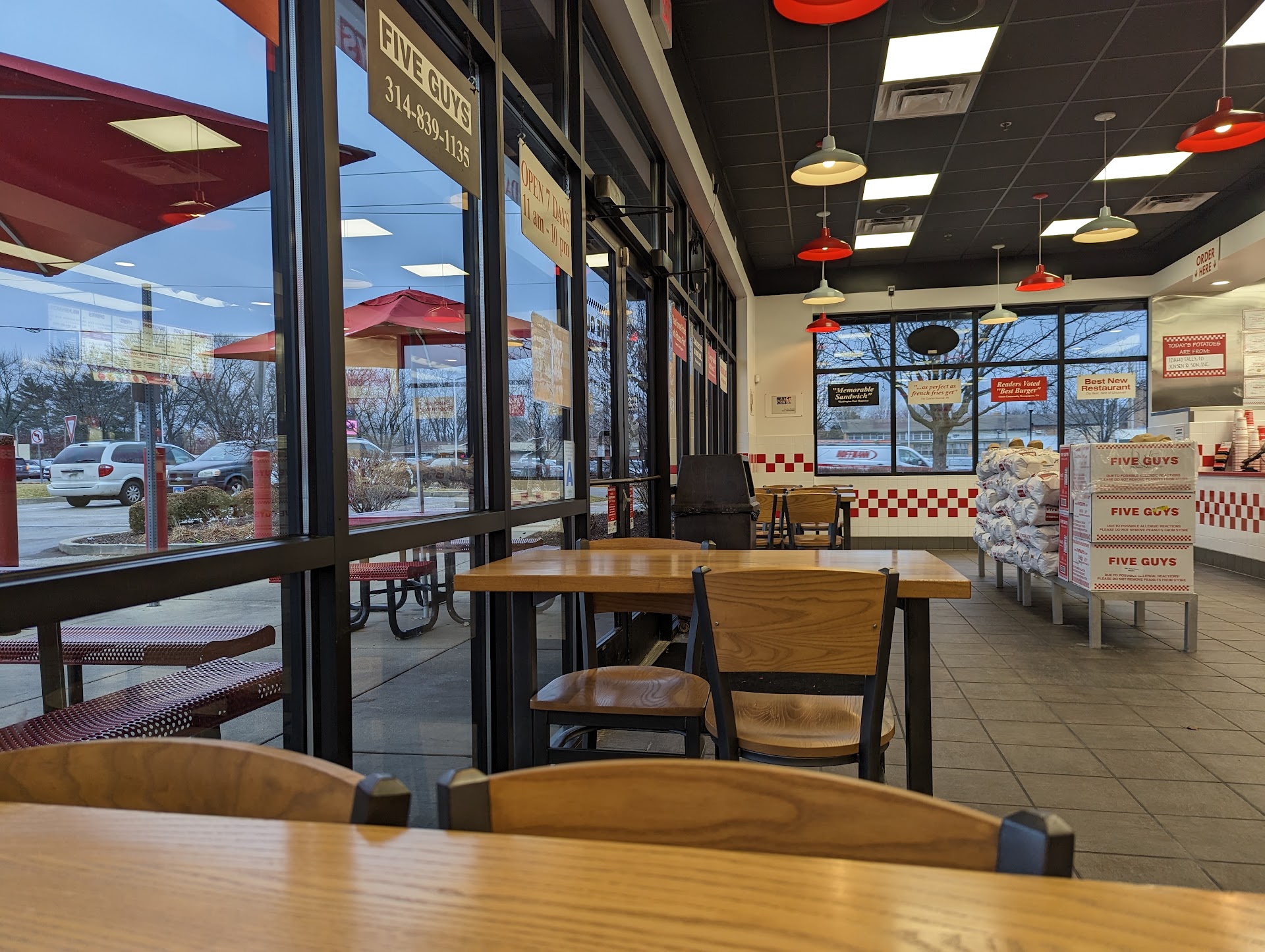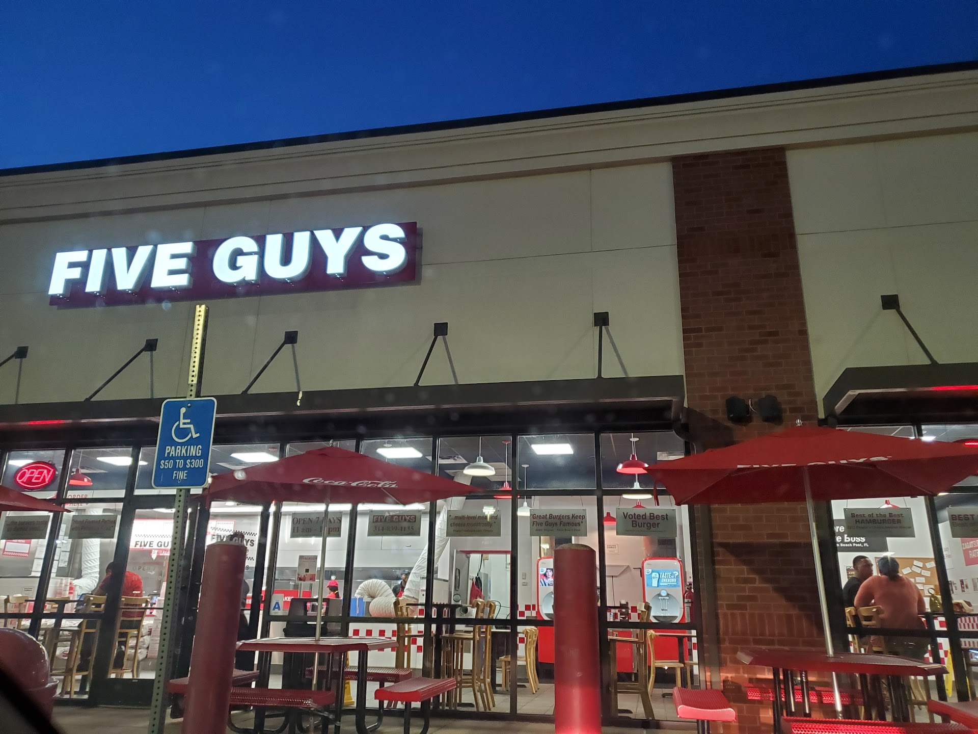 Burgers aren't bad as burgers go, and the fries could stand a two stage cooking process so they'd be crispy, but my comments are reserved for the male I concluded was the manager/franchise owner. When asked if there was a printed menu my vision impaired wife could hold he was dismissive of her problem and demanded she use her phone to view his menu at the Five Guys website. I wanted to leave, but SWMBO wanted a burger so we got a burgers. Last burgers from Five Guys, though. Not because they're overpriced (which they are) or the fries are grease laden strips of starch (which they are) but because the person in charge has no empathy for his customers. He should stay in the back and count his pinched pennies.