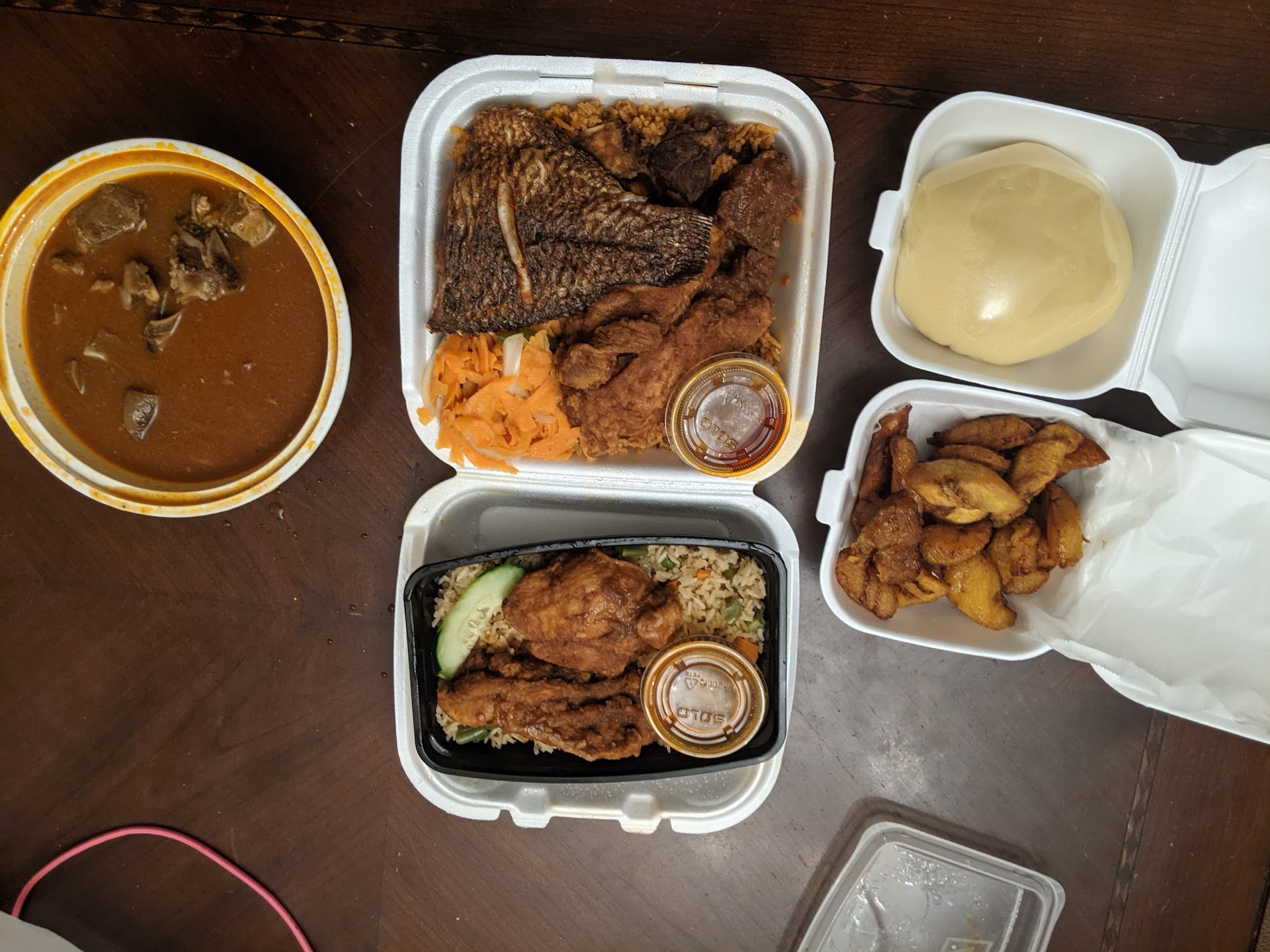 The jollof rice was totally inauthentic. I can't imagine anyone going back there a second time for that mess. It was dry and tasteless. The chicken that went with it was both overcooked and mushy at the same time. I don't know how exactly you can even do that.