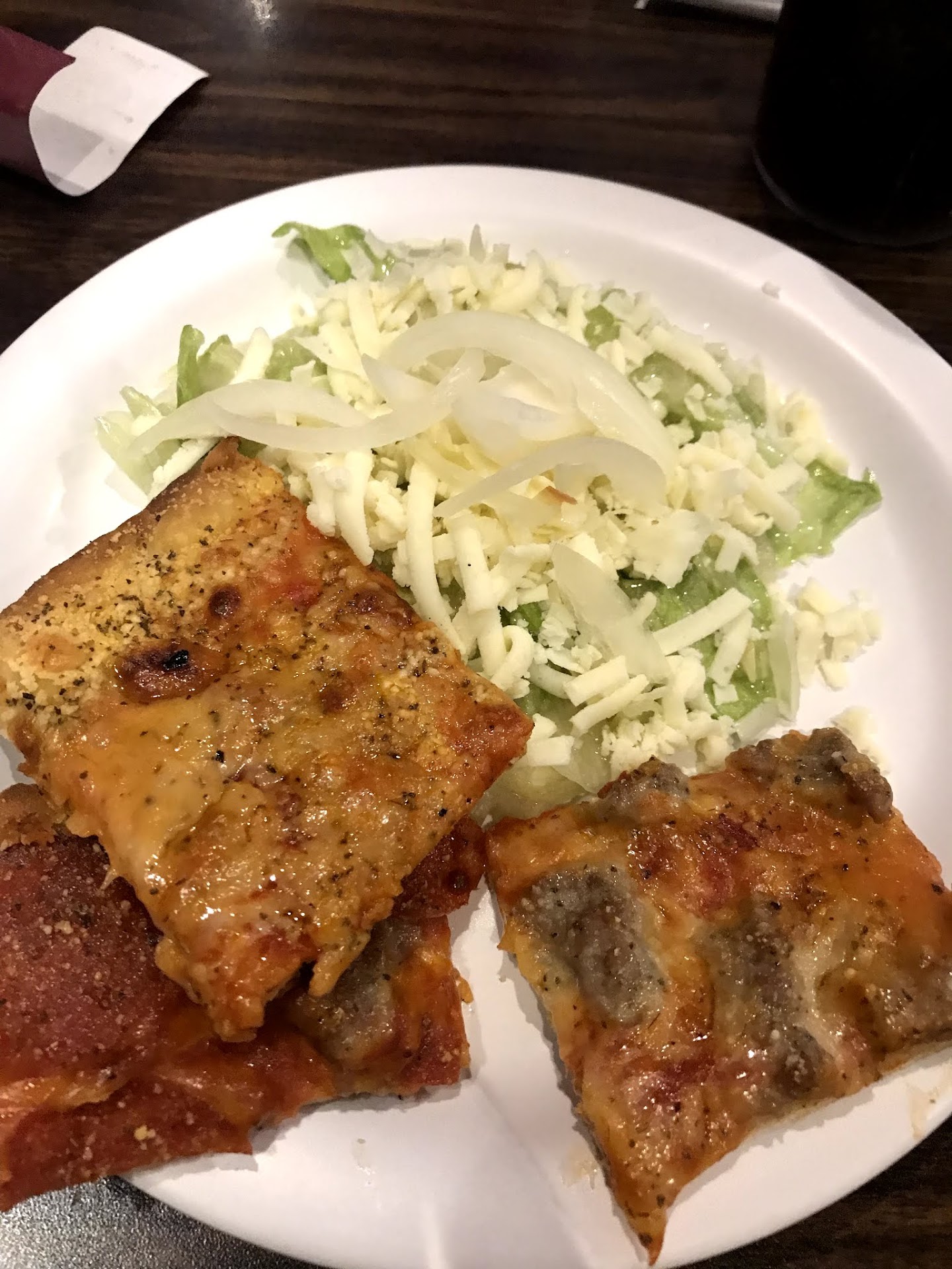 Read moreToday was my family's first & last time visiting this restaurant. We were seated at a filthy table by an old lady with an attitude. The restaurant wasn't busy, so we assumed that she would eventually stop pretending to be so occupied & clean the table but no. She rudely took our drink orders, seemingly offended by the mere question of do they offer strawberry sodas. Sorry lady it wasn't a demand, just a simple question. I'm fine with Pepsi products lol. We eventually had a different person come & take our order. We waited for an extreme amount of time for 2 pizzas a chicken strips. We had plenty of time to sit & see other customers come in & be seated at tables that the old lady now feels the need to clean properly. People came in after us , ordered food & ate as we still waited. Finally we requested that we have our food to go, only to be brought 2 empty pizza boxes. When we finally received our pizzas, we were actually expected to transfer them to the boxes without a spatula or any other utensils. It was just a weird vibe. So if you want overpriced pizza, served by an evil old lady, on a filthy table,as you watch other more important customers being served ,while you sit clearly invisible to the staff, this is the restaurant for you! I personally was afraid to even eat the food after that treatment & would've been better off buying frozen pizza from the...