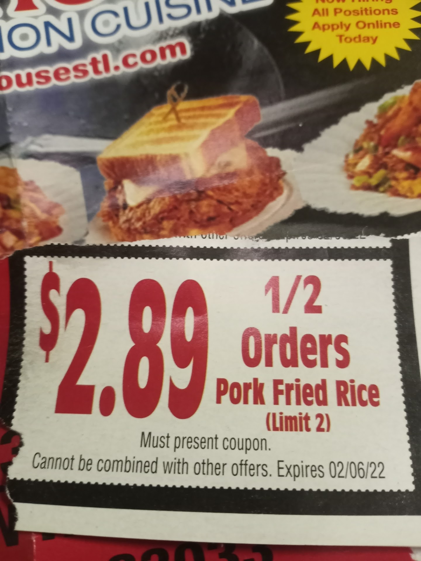 There are much better Chinese take-out places around. There's even one across the street from this one and up the road a bit. I prefer Quik Wok in St. Ann or even Panda. I could have gotten this same meal at half the price at any of these places (which are all cleaner) and it would have been much more flavorful and appealing. So skip this place. It won't be around...