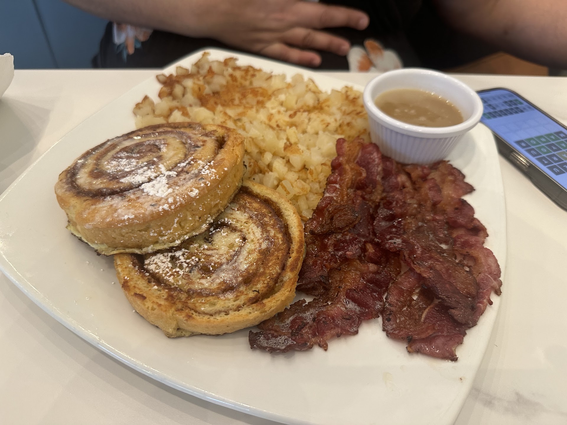The food is very good. We had ribeye steak & over medium eggs + traditional breakfast with scrambled, eggs, house-made hash browns & beef bacon. It was very good but did take an exceptionally long time - over 30 minutes to arrive from the kitchen. It was not a āhigh volumeā time. The decor is pretty. Even the bathrooms are very nice. Very clean & not too noisy. It is very pricy. $4 for a good cup of regular brew Joe and a $4 glass of iced tea. $15 - $17 breakfast & lunch entrees. None of the breakfast combos come with pancakes or waffles as an option so you have to spend at least $8 more for them or do a plate share with one person ordering pancakes or waffles & another getting a breakfast combo with French toast or biscuits as a choice. A table next to us did the plate share thing & their blueberry pancakes did look great, as did their cinnamon roll French toast. In the 30+ minutes we waited for our food, our waitress was at the bar area scrolling through her phone. My wife commented that a $4 drink shouldnāt run dry with a lost waitressā¦. Especially brewed coffee at breakfast⦠There is a small waiting area & if thereās a line when you arrive, you should expect a pretty long wait to be seated since the kitchen is so slow. All in all, if Dix can ever embrace a need to get their kitchen hopping & get the wait staff to learn that keeping full drinks is a priority, this could be a nice stop for an occasional $50 breakfast/brunch (with tip) for...