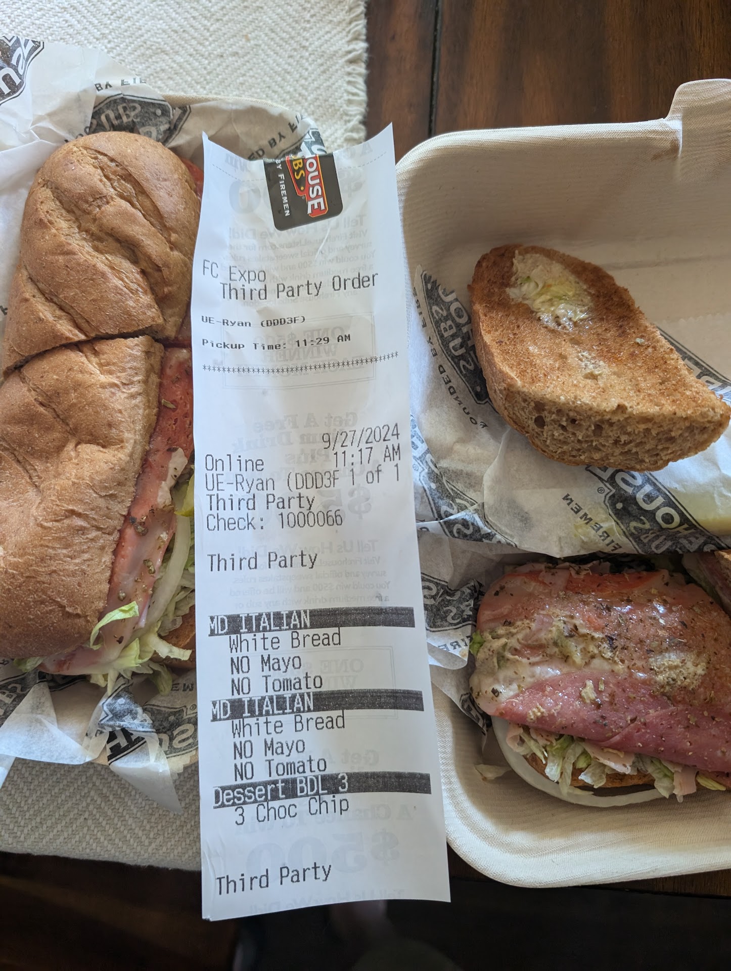 Read moreI ordered online and came in to the store 10 minutes before my order was finshised. I was greeted politely and said I had an online order for Michael but I'm a bit early. The employee looked at the screen and said got your order, it will be ready in a few minutes. I said perfect and sat down waiting for my order to be done. I thought that I would be alerted when my order was finished since I spoke directly to an employee behind the counter but no, it was sat down on the to go rack without me being notified even though I was sitting there. The store was not busy and 10 minutes after my order should have been ready I decdided to get up and check since multiple people had come and gone picking up their order from the rack. Sure enough, mine was there. Had been for many minutes without a single employee, inducing the one I spoke to and gave my name to, did not let me know my order was ready. I left and when I got home, low and behold the 2 order of chips I paid for were not in the bag. To be fair, the sandwiches were good but the lack of customer service failing to notify me when my order was ready when they new my name and knew I was there plus paying for chips I did not get...