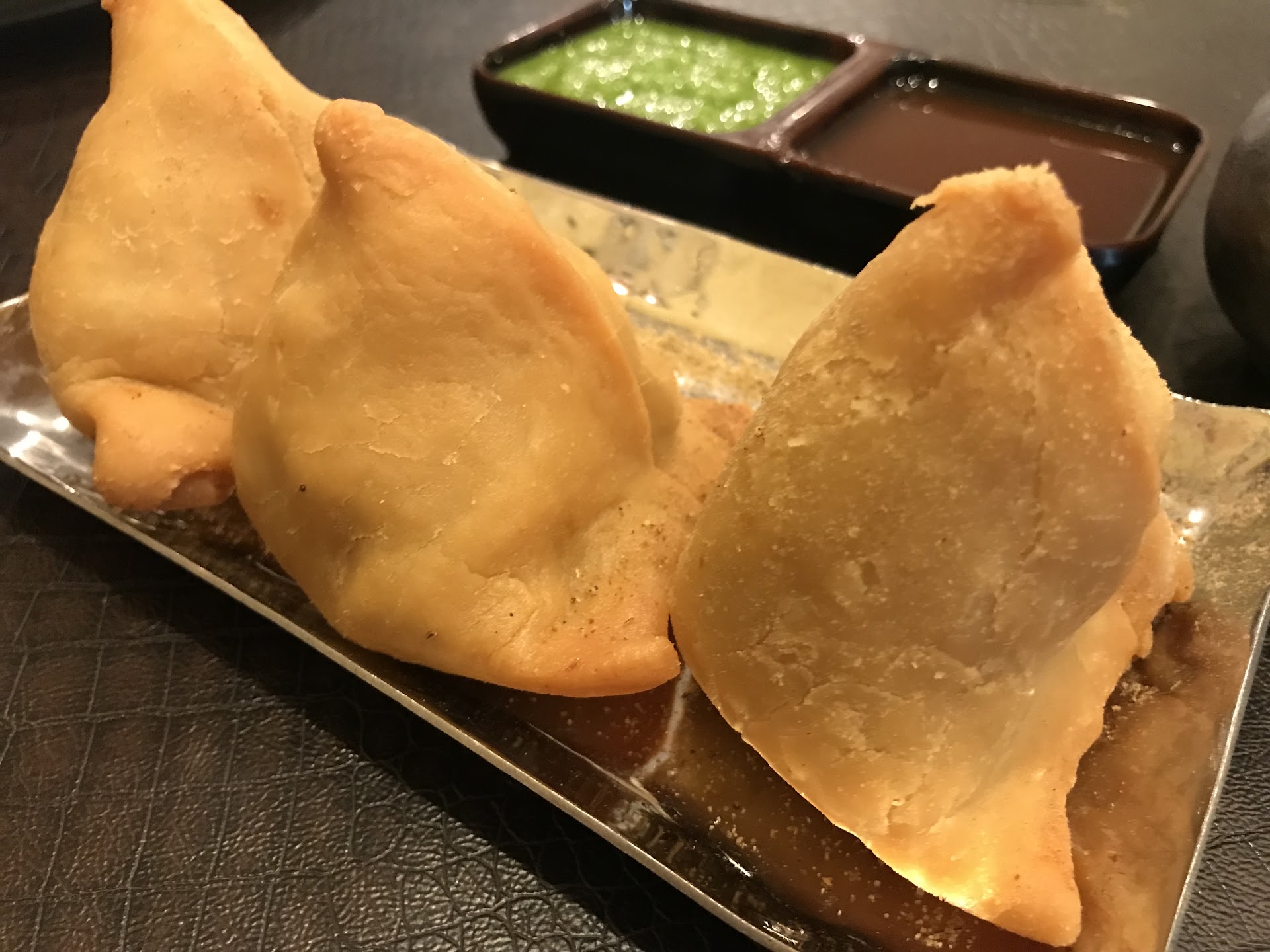 We got some samosa and Gobhi Pakora (battered & fried cauliflower); I only tried the samosa which was quite good. My son-in-law and daughter enjoyed the Gobhi Pakora. My grandson was dubious about the samosa but wound up finding it to his liking.